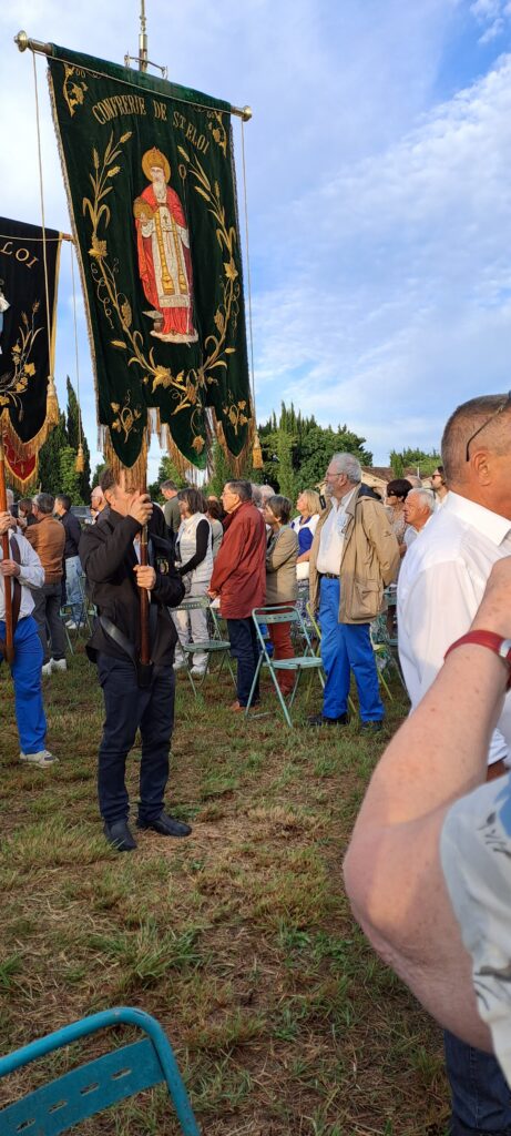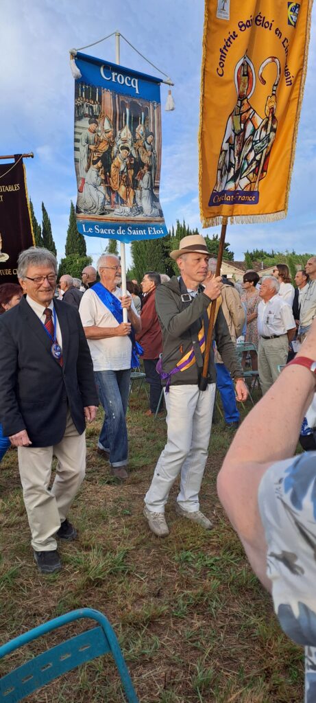 La messe fût très belle, très recueillie, et animée par la chorale regroupant un grand nombre de confrères et consœurs des confréries locales, accompagnés par les tambourinaires. L’homélie de Mgr Delabre sur Saint Eloi nous a invités à suivre son exemple en appliquant ses vertus
