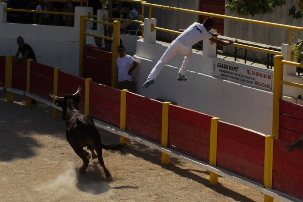 Traditionnellement, le samedi après-midi : Abrivado dans les rues de Rognonas
