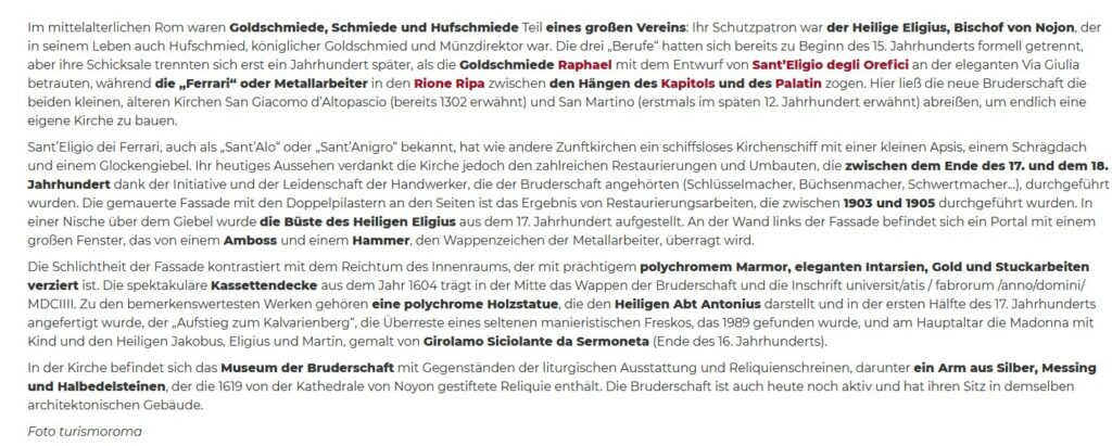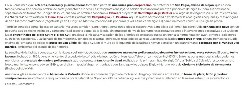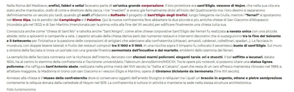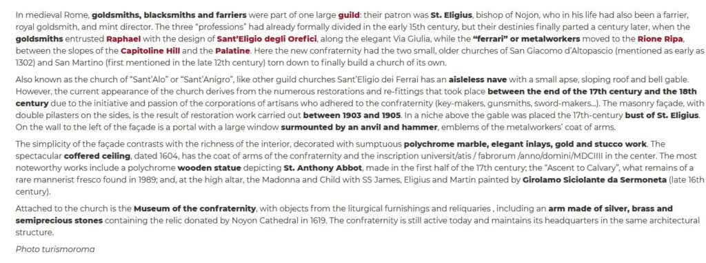 Arciconfraternite di Sant’Eligio de Ferrari – Roma. & Confraternita de Sant’Eligio degli Orefeci – Roma